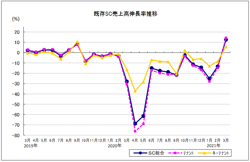 3月SC統計|既存SC売上高12.5%増/反動増も19年比では20%減
