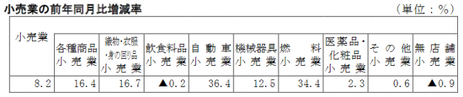 5月商業動態統計|小売業前年比8.2%増/百貨店598%増・コンビニ5.3%増