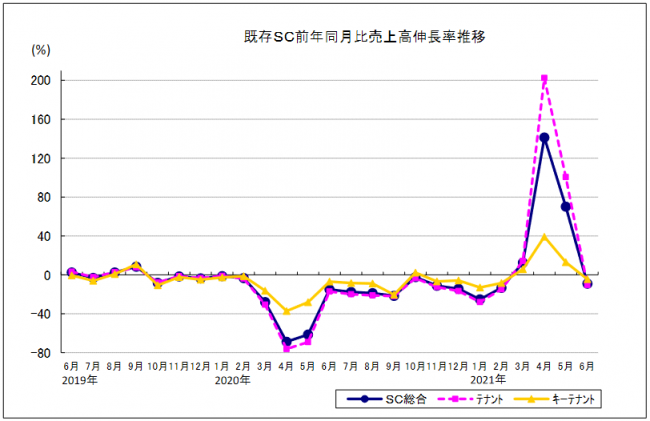 一般社団法人日本ショッピングセンター協会(東京都文京区、清野智会長)が6月のショッピングセンター(SC)販売統計を発表した。