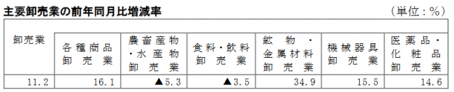 卸売業は31兆6020億円の11.2%増、小売業は12兆0180億円の3.2%減となった。なお、商業販売額の季節調整済前月比は0.6%の減少で、卸売業は0.7%減、小売業は4.1%減だった。「季節調整済」とは、季節要因以外に曜日・祝祭日要因、うるう年要因などが調整されている。