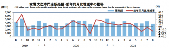 8月家電チェーン統計|販売額3697億円18.3%減/3社ともに2割減収