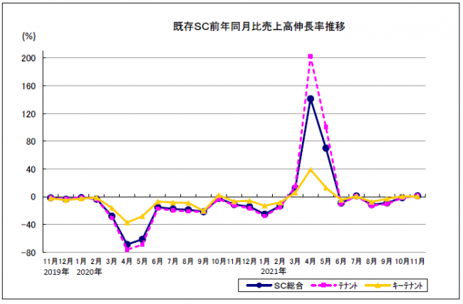 11月SC統計|既存SC売上高は前年同月比1.3%増、前月から2.7ポイント改善