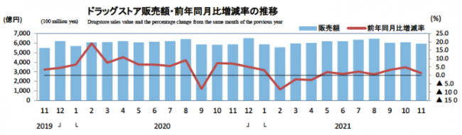 11月ドラッグストア統計|5922億円1.3%増/ウエルシア2.8%増収