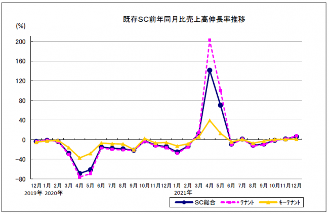 12月SC統計|既存SC売上高は前年同月比6.0%増、前月から4.7ポイント改善