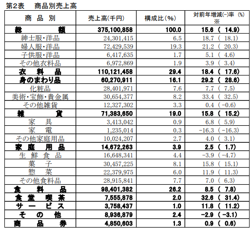 1月百貨店統計|売上高3751億円16%増4カ月連続プラス/高額商材の高伸続く