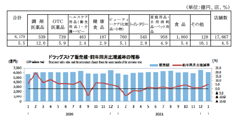 1月ドラッグストア統計|6179億円5.5%増/コスモス薬品・ウエルシア絶好調