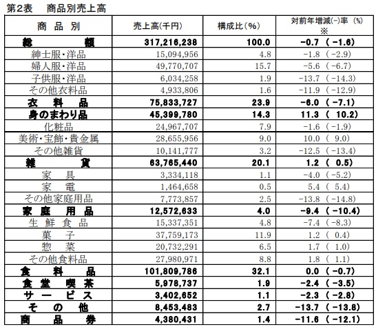 2月百貨店統計|売上高3172億円0.7%減/地方は全地区で前年割れ