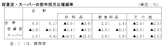 既存店は、百貨店が0.8%減、スーパーは0.4%増。
