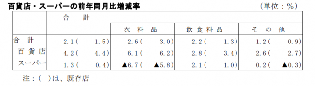 既存店は、百貨店が4.4%増、スーパーは0.4%増。