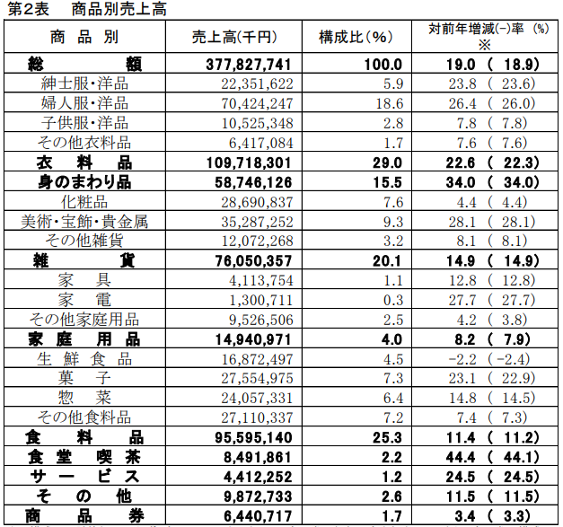 4月百貨店統計|売上高3778億円19.0%増/制限解除で客数18.7%増