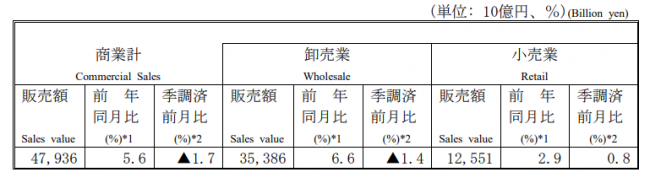4月商業動態統計|商業販売額47.9兆円5.6%増/小売業販売額12.5兆円