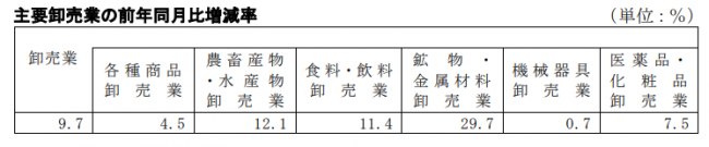 主要卸売業の業種別販売動向は以下の通り。