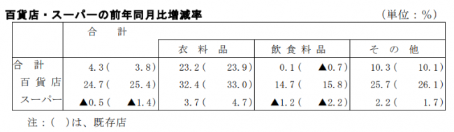 既存店は、百貨店が25.4%増、スーパーは1.4%減。