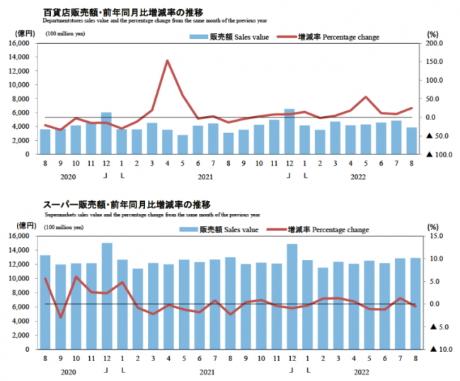 8月商業動態統計|商業販売額47.2兆円8.2%増/小売業販売額12.5兆円