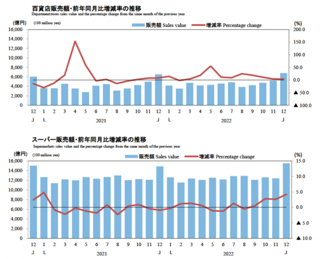 12月商業動態統計|販売額54.7兆円3.3%増/2022年販売額は584.8兆円
