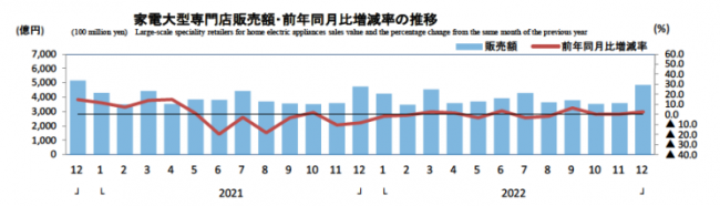12月家電チェーン統計|4845億円2.5%増/2022年販売額は4兆7084億円