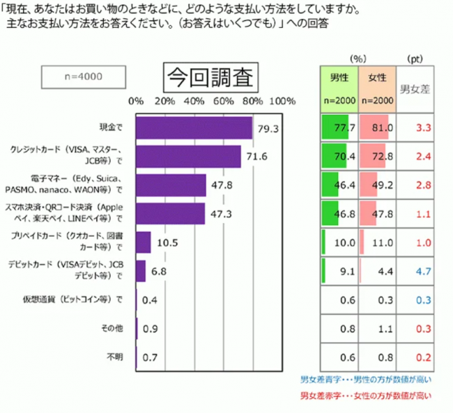 ■ふだんの支払方法は「現金」が8割、QRコード決済は4年で10倍増