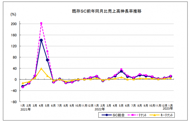 (一社)日本ショッピングセンター協会(東京都文京区、清野智会長)が1月の「SC販売統計調査」を発表した。既存SC売上高は前年同月比伸長率プラス11.1%。調査サンプル数は、484SC。