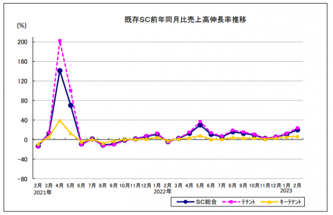 2月SC統計|既存SC売上高19.9%増/外出機運の高まりで約20%伸長