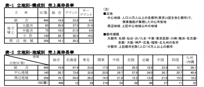 近畿は、総合でプラス18.9%となった。中心地域は34.0%となり、旅行客などの来館者増加で大阪市、京都市を中心に高い伸長率となったSCが多かった。