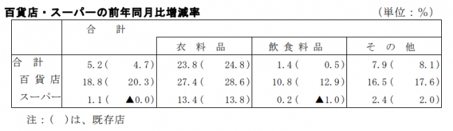 既存店は、百貨店が20.3%増、スーパーは0.0%減。