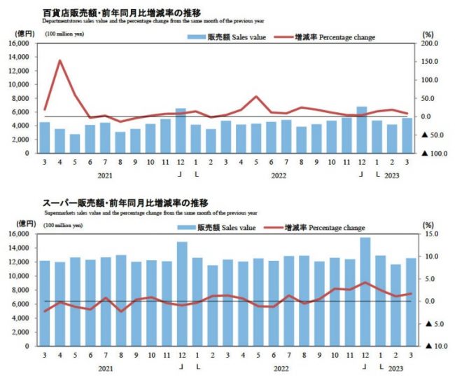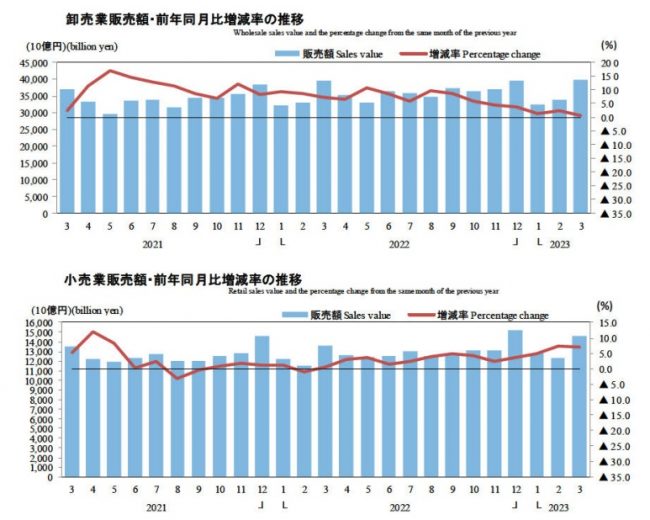 3月商業動態統計|商業販売額54.5兆円2.4%増/小売業販売額14.6兆円