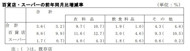 既存店は、百貨店が9.9%増、スーパーは0.7%増。