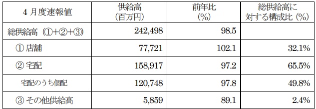 4月日生協統計|総供給高1.5%減/3カ月連続前年割れ
