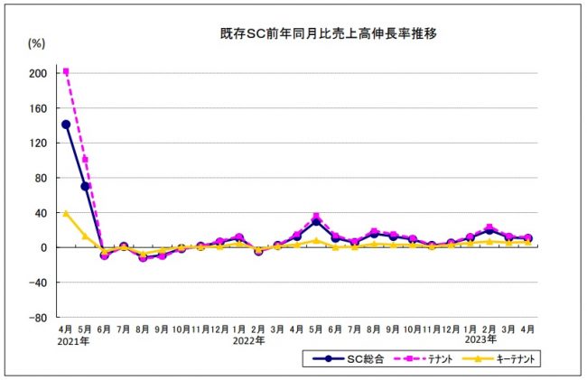 4月SC統計|既存SC売上高10.4%増/外出機運が高まり4カ月連続2桁伸長