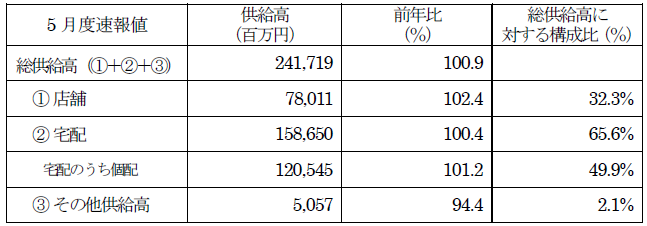 総供給高は2417億1900万円で、前年同月比は100.9%で、4カ月ぶりの前年超えとなった。