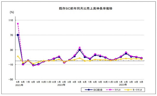 5月SC統計|既存SC売上高7.6%増/コロナ5類移行で来館者増