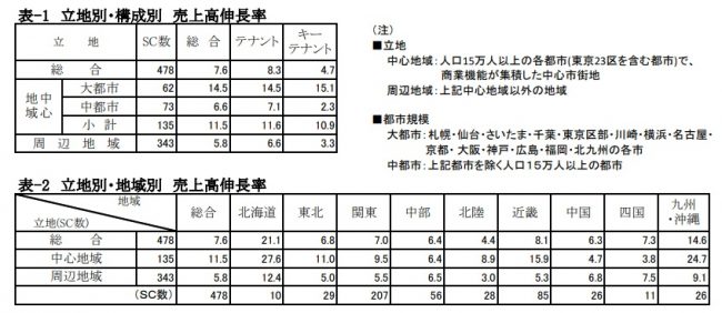 中心地域・中都市は総合でプラス6.6%となった。観光地や繁華街立地のSCが好調だった一方、ゴールデンウィークで地元客が遠出したため来館が減ったSCもあった。