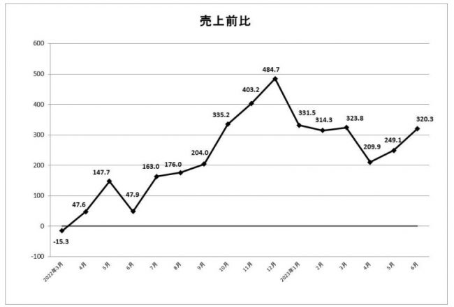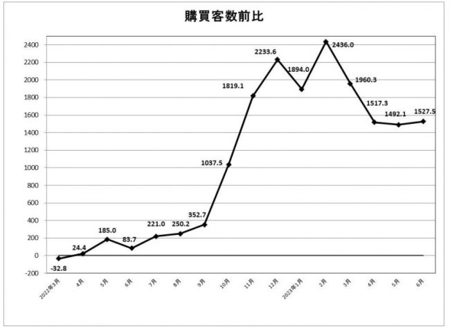 (一社)日本百貨店協会(東京都中央区、村田善郎会長)のインバウンド推進委員会が、2023年6月の「外国人観光客の売上高・来店動向」を発表した。インバウンド推進委員店の88店舗が調査対象。