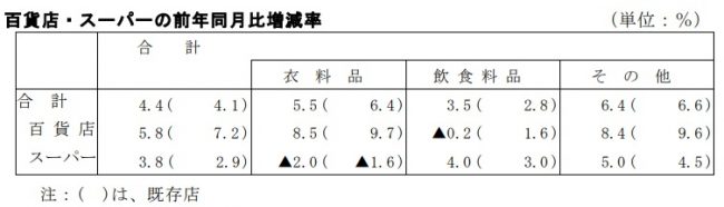 既存店は、百貨店が7.2%増、スーパーは2.9%増。