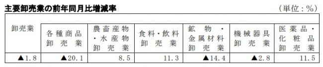 主要卸売業の業種別販売動向は以下の通り。