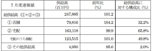 7月日生協統計|総供給高2479億円1.2%増/3カ月連続の前年超え