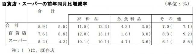 既存店は、百貨店が8.8%増、スーパーは4.3%増。