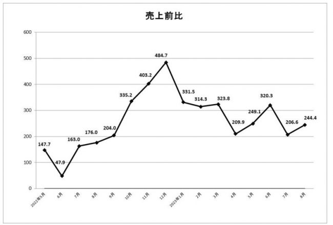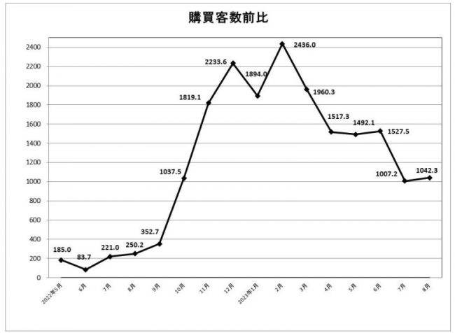 (一社)日本百貨店協会(東京都中央区、村田善郎会長)のインバウンド推進委員会が、2023年8月の「外国人観光客の売上高・来店動向」を発表した。インバウンド推進委員店の88店舗が調査対象。
