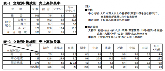 周辺地域は総合でプラス5.1%。レジャー需要にも対応する広域商圏の大型SCや販促イベントがあったSCは好調だった。