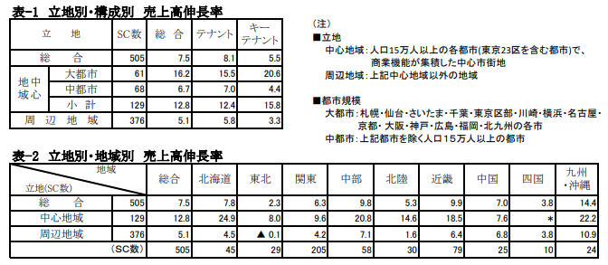 中心地域・中都市は総合でプラス6.7%。観光立地のSCや、館周辺での地域イベントがあったSCがとくに好調だった。