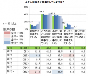 きに家事をしている」 「どちらかといえば前向きに家事をしている」が計53.9%で、半数以上の人が前向きに家事をしていることがわかった。
