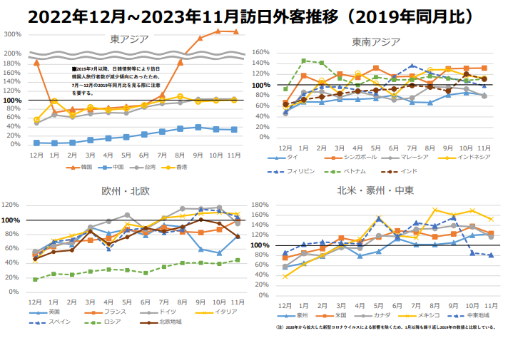 地域別では、23市場中13市場(韓国、台湾、香港、シンガポール、インドネシア、ベトナム、インド、豪州、米国、カナダ、メキシコ、イタリア、スペイン)で、11月として過去最高を記録した。
