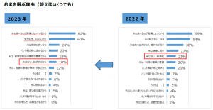 1日に2回程度と回答した割合が50.8%で最多だった。続いて、1日に1回程度(27.0%)、1日に3回以上(17.4%)という結果となり、全体の95.2%は1日に最低1回はお米を食べていることが分かった。また、パンや麺ではなくお米を選ぶ理由の、1位は「米を食べるのが習慣になっているから」(61.6%)で、2位は「米が好き、おいしいから」(60.3%)で、前年度よりも回答数が増加した。さらに、「米は安い、経済的だから」と回答した人は前年度の20.8%から17.5%に下落し、お米の相場上昇の影響が如実に表れる結果となった。全体的に価格を重視してお米を選ぶ人は減少したが、人々がお米を食べる頻度に変化はなかった。