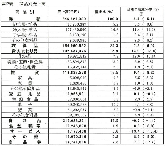 そして商品別では、主要5品目のうち4品目で前年実績を超えた。ラグジュアリープランドを中心とした身のまわり品と雑貨はコロナ前の実績を上回った。国内外共に好調だった化粧品は、クリスマス需要もあり17.0%増と高伸した。主力の衣料品は、天候与件などからコートが苦戦したが、ジャケットやニットなどが動き、婦人服・洋品は二桁で伸びた。菓子はギフト需要が好調だった他、クリスマスケーキも堅調で前年を上回り、コロナ前の実績も超えた。