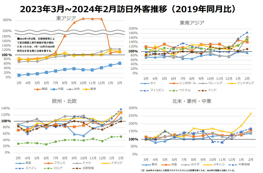 2月訪日外客数統計|278万8000人/23年比89.0%増・19年比7.1%増