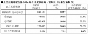 日本生活協同組合連合会(東京都渋谷区、土屋敏夫代表理事会長)が、2024年2月度の供給状況(売上高)を発表した。66生協を対象としている。