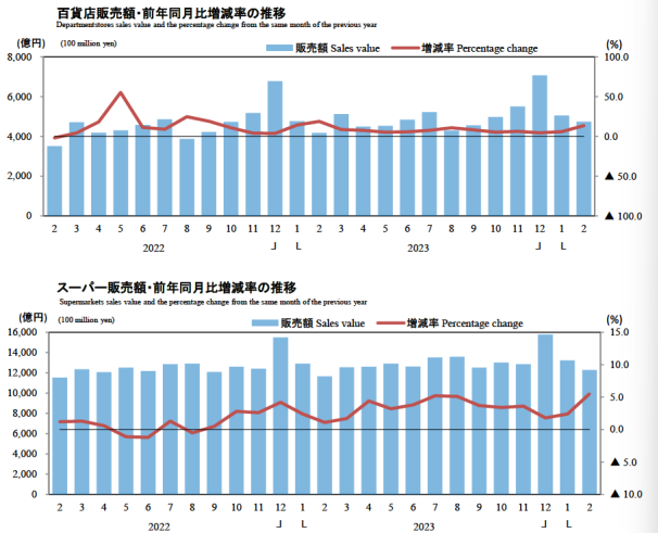 2月商業統計|商業販売額47.8兆円3.3%増/小売販売額12.9兆円4.6%増