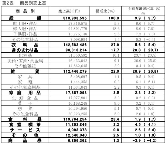 3月百貨店統計|売上高5109億円/既存店9.9%増で25カ月連プラス