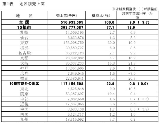 地区別では、インバウンド効果と高額商材が好調な都市が9地区で前年実績を超え、12.9%と高伸した。