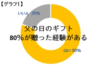 「父の日」のギフトを贈ったことがあるかどうかについてたずねたところ、80%の人がギフトを贈った経験があると答えた。